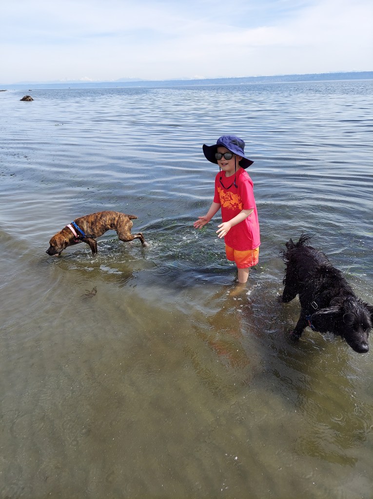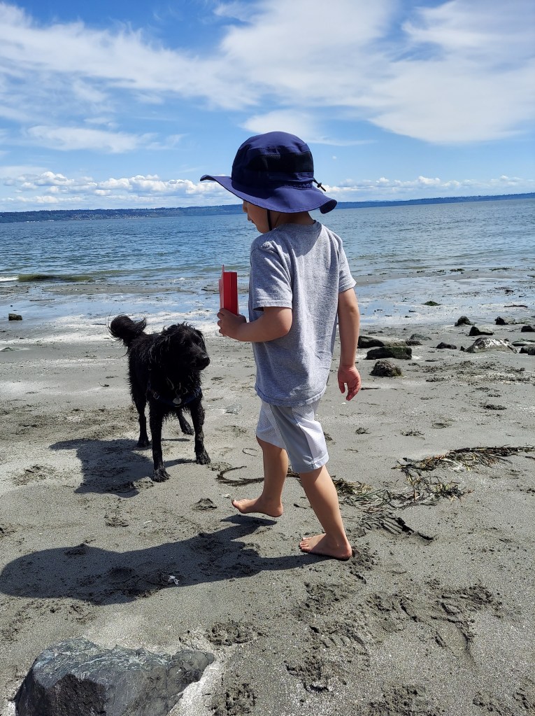 On Friday, April 23rd, I received a call from Theo’s doctor. His IgG level was at 257. An infusion is recommended for levels below 400. So on Tuesday, April 27th, Theo was back in clinic getting an infusion of IgG. It is just like getting blood or platelets. When receiving blood product, there is a risk of having an allergic reaction. Therefore, Theo took Tylenol and Benadryl prior to the infusion. The appointment in total lasted about three hours. We were also informed that Theo’s platelets had dropped to 42 thousand. A hold was placed on all chemotherapy, except Imatinib, for one week. Theo would have to return in one week for a lab visit to check blood counts again. His doctor told us that since Theo had already been on a chemo hold for three weeks earlier in Maintenance, his chemotherapy dose needed to be reduced. The following Tuesday, May 4th, Theo returned for a lab visit with his Papa. It had been months of Theo asking for Luis to go with him to his appointment. Unfortunately, only one parent is allowed to be with the patient during appointments. Luis is extremely busy working full time and more. When Theo was admitted to the hospital, Luis would do his best to come to the hospital and give me breaks so I could leave for a few hours. Since I am not working, my job is taking care of Theo. Taking him to his appointments whenever they need to happen and stay for however long is needed. I have the ability to drop whatever I am doing to rush to the hospital with Theo. Luis does not. But this time Theo was begging for Luis to go with him. (No hurt feelings here). Theo was so proud to show his Papa how brave he is when he gets his port in. So excited to show his Papa how the appointment works. It felt weird not going with Theo, like I was missing out. But I love that Luis was able to be there with Theo this time. They are mirror images of one another. My lovies. Those two old souls are my everything. Fortunately, Theo’s platelets have recovered. The current plan for Theo is to continue with his chemotherapy but at only half the dose. Also included in the plan… TO HAVE FUN. I think we can handle that. With two dogs, a beach two minutes away, a love for nature, and a wild imagination, Theo is having no problem at all having a good time.