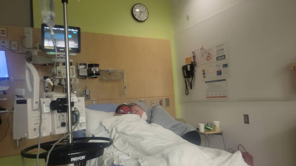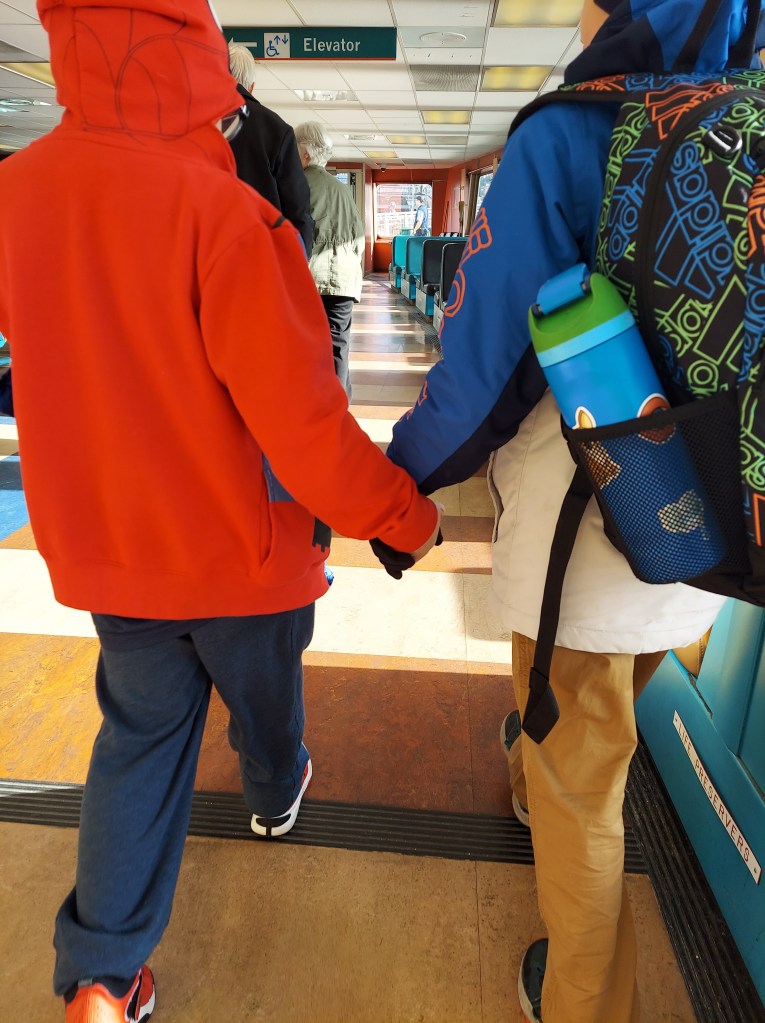 Now, back to the part when I was panicking. While Luis held the puke bag and comforted Theo, I called the on call BMT doctor. At first, she recommended we wait for him to stop vomiting and then give the stress dose. Ok… but what if he can’t stop?! It was almost 11pm. The last ferry leaving Kingston was at 11:10pm. Theo had been throwing up for 45 minutes and it didn’t look like he was about to stop anytime soon. If we were going to Children’s Hospital, then we needed to get on that ferry! Like I said, we did not want to risk having to give the hydrocortisone injection. We did not want to end up going to the emergency room in Silverdale. No way were we going to let that happen. Then Luis saw blood in Theo’s vomit. That did it. We knew we needed to leave. We packed a bag and raced out the door, barely making the last ferry. Theo was in and out of sleep or focusing on taking deep breaths most of the ferry ride. As soon as we were within a mile of the hospital, Theo said, “I feel much better now”. Oh thank goodness!! But really?? Looks like we could have stayed home after all. Well, it was too late now to turn around. We told the on-call BMT doctor that we were coming and they were expecting Theo in the ED. Here we go. A visit to the ED is always at least five hours if not more. We knew it was going to be a long night. It took almost two hours for the nurses to find a vein and start an IV. TWO HOURS!! They finally got it by using an ultrasound. Theo’s veins are so tiny and difficult to find even on a good day. That night they were tiny AND flat because he was so dehydrated from throwing up. I have so much appreciation for the nurses at Children’s Hospital. Working under so much pressure, sweating as they make the seemingly impossible, somehow possible. It can’t be easy, but they always find a way.