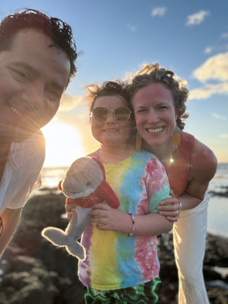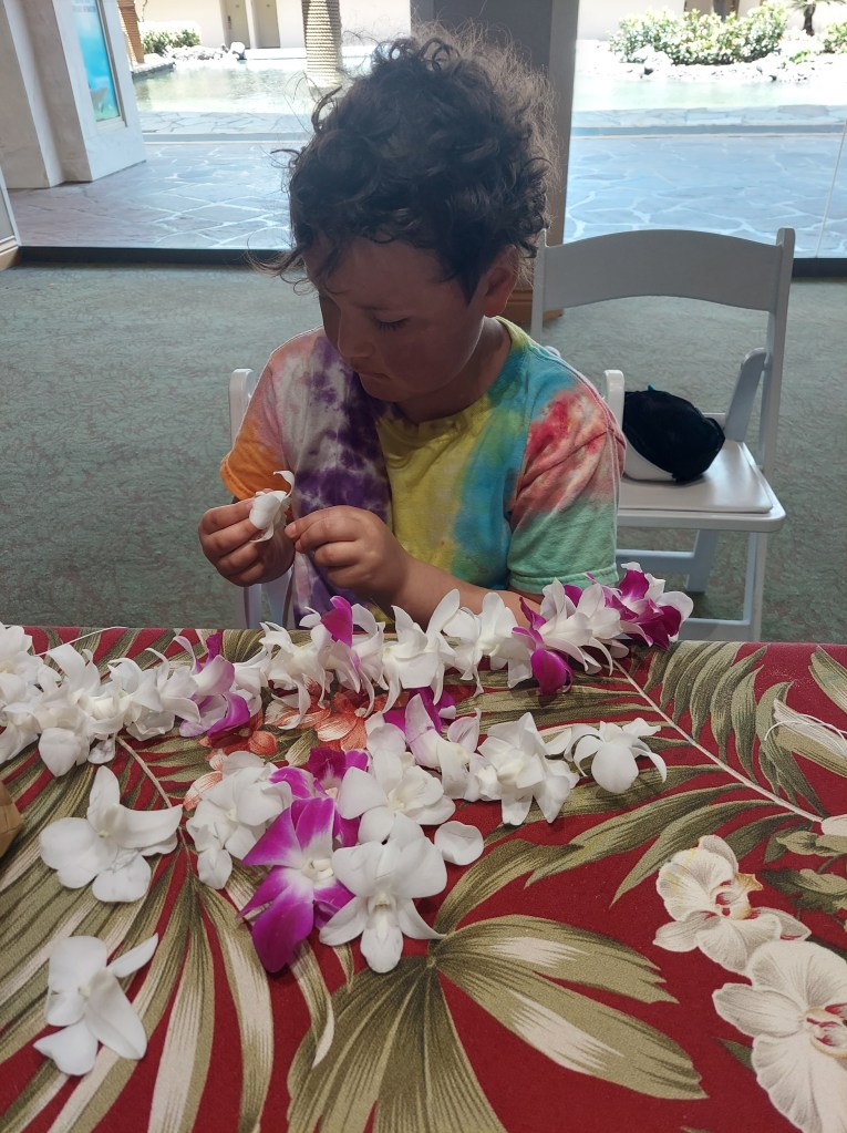 My thoughts were that the salt water and tropical Hawaiian air would relieve Theo of his nagging cough. Unfortunately, no. But it did heal us in other ways. Hawaii is such a magical place, full of wondrous nature. Theo, being a nature boy, was in his element. Like nothing he had ever experienced before. Every flower, every animal, creature, smell, and sight had Theo shouting with excitement. Our second day there we went to a snorkel beach. Luis (also an animal whisperer) saw a sea turtle while swimming out by the reef. It swam right under him for almost five minutes. Luis was in awe, appreciating every moment this beautiful creature was in his presence. Theo was of course very jealous. But as Luis promised, Theo saw three sea turtles the next day. I think Luis spoke to the sea turtles and made a deal. Luis always finds a way to make even the impossible possible. Like magic. We couldn’t get enough of it. Theo woke up every morning at the crack of dawn, “ready to seize the day.” Each day was packed full of action and fun. We swam in the pool every day (for hours and hours until our toes turned into raisins), snorkeled with the tropical fish and sea turtles, soaked up the warm sun, ate whatever sounded good (and it all sounded good) and swam with dolphins. The Hawaiian Cultural Center had free events every day that we could attend. Like making leis, necklaces out of kukui nuts, art projects and more. On our last night in Hawaii, we went to a luau. What a show! It was a perfect way to a perfect vacation. Except that the hula dancers did not invite Theo onto the stage to dance. He was a little disappointed about that. It was all for Theo. His trip, his wish. Luis and I were honored to just tag along. Theo is already asking when we can go back. Hawaii gave us time as a family to relax… truly relax and let go, have FUN. A healing of not just our minds, but our hearts and souls. A recharge of energy and strength needed for the start of school and the beginning of new adventurers.
