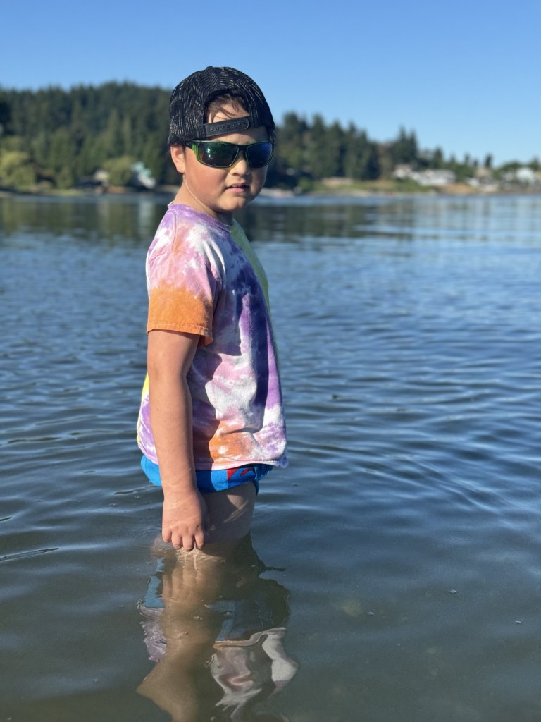Two weeks ago, Theo was at camp… for an entire week! Camp Goodtimes located at Camp Burton on Vashon Island. He was busy making friends, singing camp songs, fishing, boating, swimming, polar bear plunging, whip cream fighting, making art, doing archery, sleeping on a top bunk, sleeping under the stars, HAVING FUN! In all of Theo’s life, he had only spent ONE night away from us. The last four years he was practically glued to us. Then, at the age of nine, he went to camp for SIX nights! Seriously, it was weird AND… IT WAS GREAT. We had been counting down the days until camp for what feels like forever. It’s hard to believe it finally happened. Theo was so excited and ready. Me? Definitely excited, definitely nervous. I’m not sure what I was more anxious about. How he would feel being away from us or how I would feel being away from him. I believe it is more the latter. I am so attached to Theo. Constantly thinking about him, worrying about him, planning for him, helping him, laughing with him. So of course, I was sobbing after we dropped him off at camp. I was a mess. Luis and I each gave him one last huge hug and off he went with “Pickle juice” his camp counselor, to check out his cabin. Theo didn’t look back once. He was so ready for this. Camp changed his world. Theo came back from camp bigger, stronger, more independent, more confident, and feeling more alive than ever. He made new friends and wonderful memories.