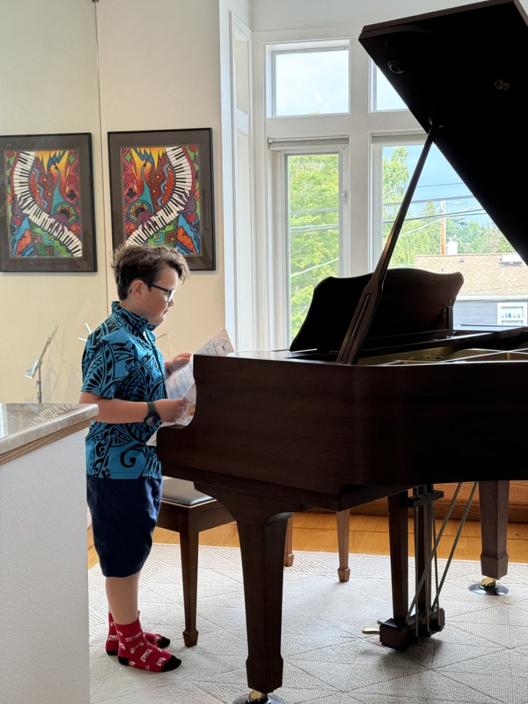 The symptoms were not getting better at all… in fact, they were getting much worse! He was red all over. Theo woke up coughing so hard and so long, he often did not have energy to get out of bed until the afternoon. Most mornings he coughed to the point of throwing up. Gagging on sticky mucus that was caught his throat. The first week of July was the worst. Extremely low energy, non-stop coughing, no appetite, labored breathing, and high temperatures into the yellow zone. On the morning of July 5th, we noticed that Theo was having more severe labored breathing. Instead of his chest rising up and down, his sternum was retracting, and his belly was pushing out. He complained of being short of breath and unable to take a full breath in. He described it by saying, “You know how when you yawn, you have to take a deep breath? Well, I cannot do that.” His breathing was very shallow and quick. We rushed to the clinic that afternoon so someone on his team could take a closer look. A new chest xray did not show anything more than the already detected upper respiratory infection. But his oxygen saturation was low at 94%. Anything lower than that and Theo would have to be admitted to the hospital to receive oxygen support. Thankfully, he was ok to go home… my parent’s home that is. His doctors wanted Theo to stay close to the hospital, in Seattle, in case anything changed or got worse. He started using a steroid inhaler twice a day. I was also instructed to give Theo stress doses of hydrocortisone for the next three days. Boy did that do the trick! Like magic, Theo woke up the next day with energy! For the first time in over a week he woke up and did NOT throw up from a violent coughing fit. He hopped out of bed and with bright smiling eyes said, “I’m hungry. What’s for breakfast?” Our boy was back! Just in time to perform in the piano recital that following weekend.