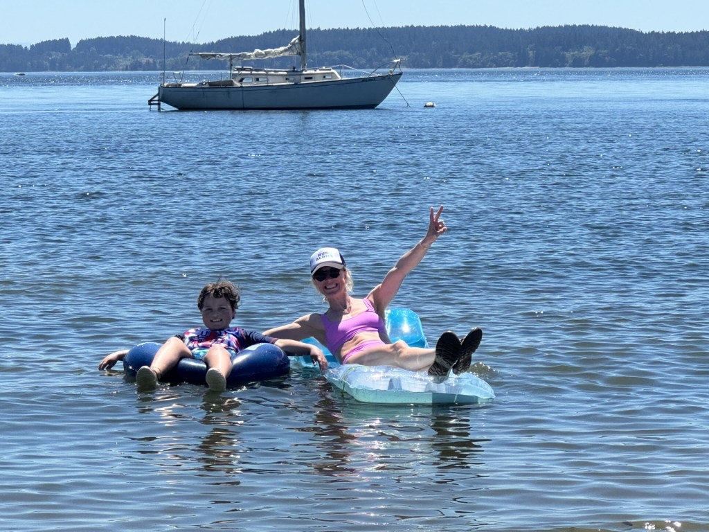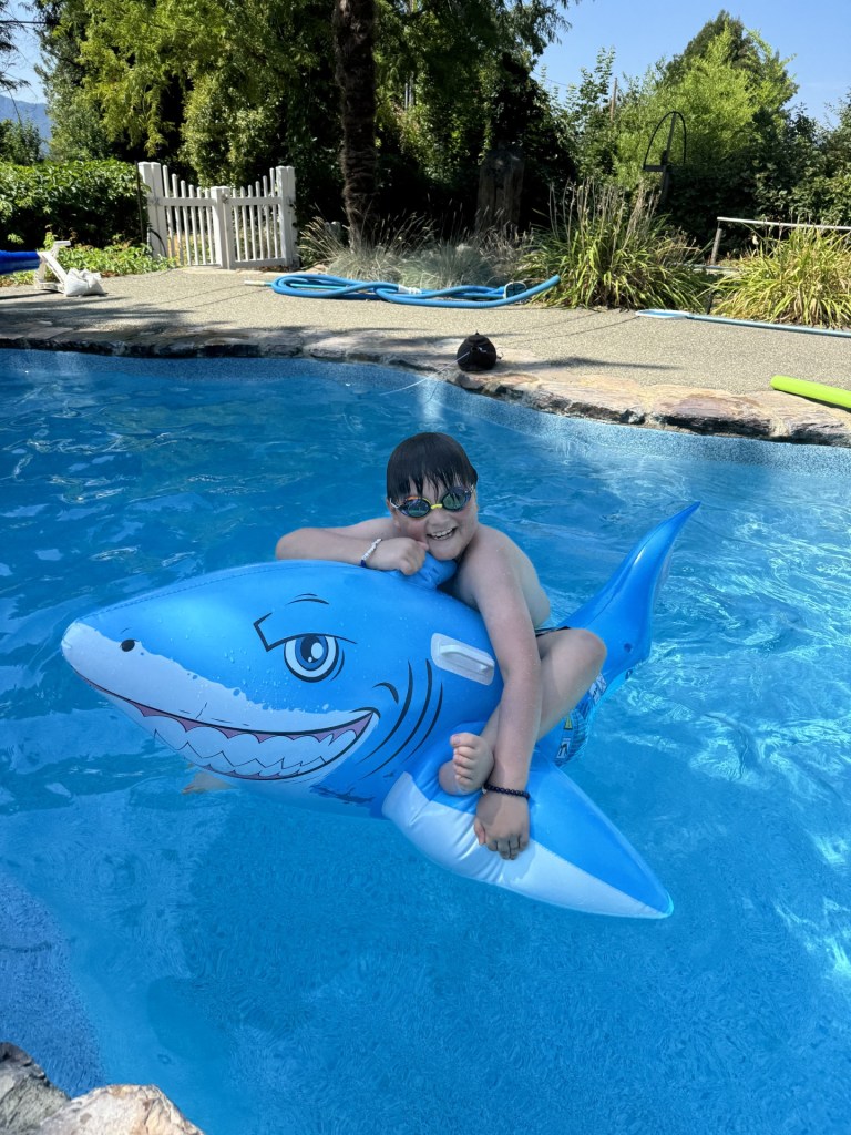 Swimming in a pool is definitely a happy place for Theo! Cooling off with Aunt Cate and Uncle Terry on their farm in Grants Pass, Oregon.