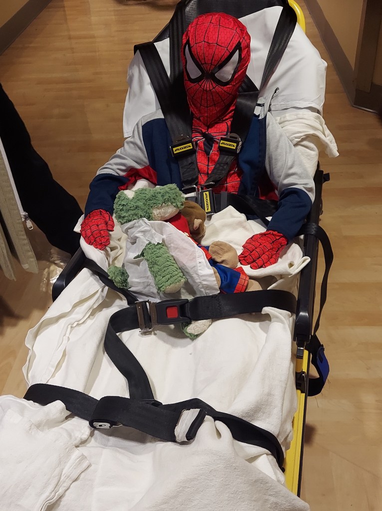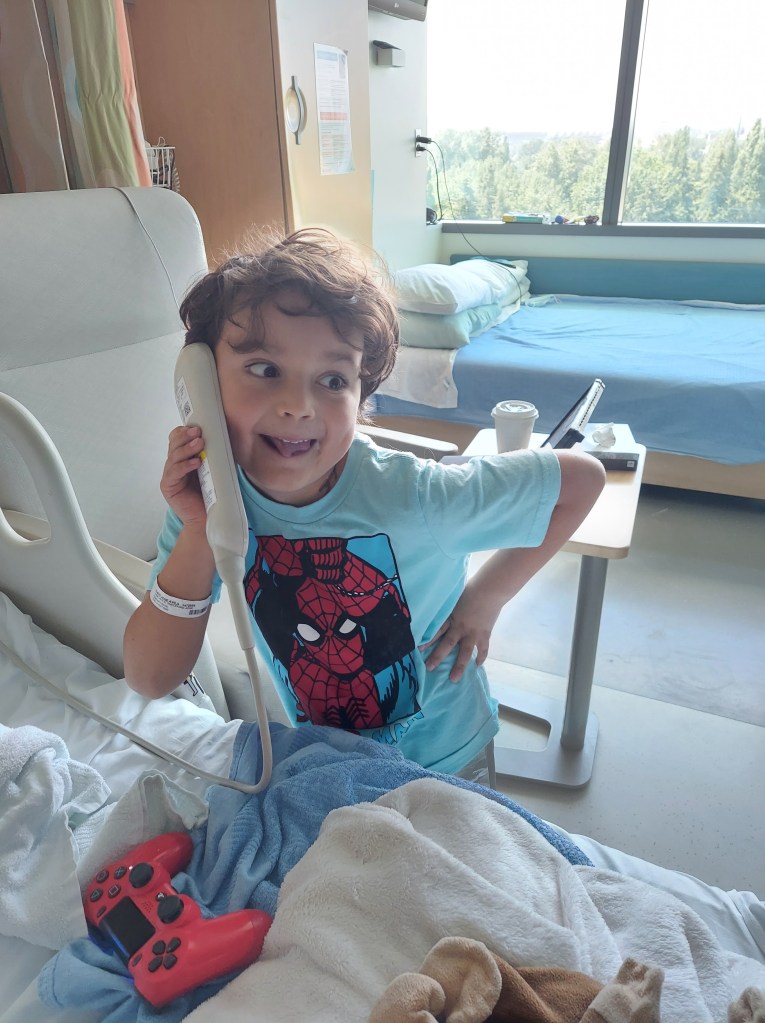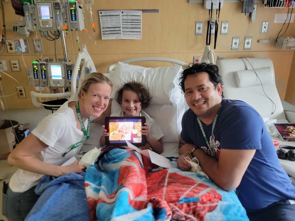 When I was 32 and a half weeks pregnant with Theo, my water broke. It was not an explosive gush of water onto the floor, but a slow drip, like I was peeing my pants a little bit every time I stood up or took a step. Luis rushed me to the hospital where I was admitted to the antepartum unit. There was still enough amniotic fluid surrounding Theo to keep him safe and growing inside my body. I was kept on strict bed rest while receiving antibiotics in hopes that I would stay pregnant as close to my due date as possible. Two weeks later, at 34 and a half weeks, I went into labor, and our superhero was born. Weighing a mere five pounds, two ounces, he was 100% joy and beauty. Theo stayed in the NICU for three weeks until he was strong enough to come home with us. He was SO tiny! There’s a picture of Luis and I holding the car seat with Theo inside. You can barely see him! Theo was finally coming home, and I was never more excited and scared in my entire life. What if he doesn’t breathe after he swallows the milk? There would be no monitors alerting us to tell us when he needed to take a breath. No nurses to remind me how much formula to add to my breastmilk. No doctor checking in to make sure his vitals looked good. Theo was still so helpless, such a fragile baby. On January 18th, 2023, Theo was discharged from Seattle Children’s Hospital. He seemed almost as fragile to me on that day, as he did nearly eight years ago, leaving Swedish Hospital. My heart was racing, my mind was spinning. Once again, I found myself with that overwhelming feeling of fear for my son, who just days prior was hooked up to three different IV monitors, watched night and day by doctors and nurses, and was now going to be in my care. The transition nurse said exactly what I was already thinking, “It’s going to feel like taking home a newborn”. This discharge was like no other we had experienced before. This was the big one.