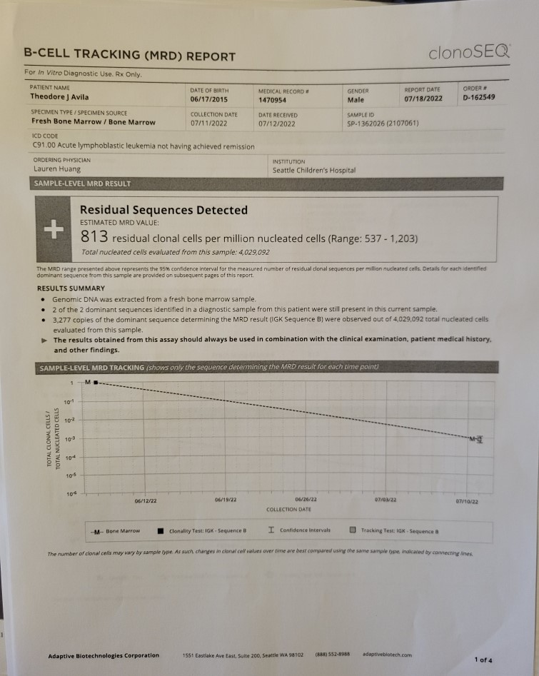 Theo had a bone marrow aspirate done on day 63 (February 6th, 2023). He was so excited for the “sleepy milk” that after it was given, he started counting backwards, “10, 9, 8…” but instead of saying zero, he shouted, “3, 2, 1, NACHO!!!” It was a triumphant cry as his eyes rolled to the back of his head and his body flopped back like a cooked noodle. It was hysterical, the entire room was laughing to tears. The bone marrow results came back: negative! Not that we were expecting anything other than negative. But as Theo’s doctor said, “it’s good to go straight to the factory to see what’s going on.” In other words, be absolutely sure that the bone marrow is performing as it should. And it is! The chimerism results came back and 100% of the cells in both Theo’s bone marrow and peripheral blood are donor cells!!! This is THE BEST! You cannot ask for better results than this!
