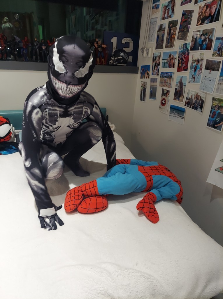 “Children should never have baths, my grandmother said, it’s a dangerous habit.” (Dahl, 1983, p.122). Do you know about The Witches? They want to rid the world of children and think they all smell like dogs’ droppings! It’s a good thing those witches do not exist. Theo would certainly smell horrible to a witch and therefore get caught by one, due to how often he bathes and washes his hands! The protocols for cleanliness and staying safe are also very strict. Keeping a clean body and a clean household are extremely important for infection prevention while Theo’s immune system is still growing. So important, that they make you take a three-hour class on managing care at home and then review with the transition nurse for another hour the day before discharge. There is a very strict list of items Theo must avoid, like soil, dust, sand, construction debris, plants, animals, and even the sun! Skin cancer is the most common secondary cancer that bone marrow transplant (BMT) patients get. So, if Theo is in the sun, he will be completely covered. The cleaning protocols started to stress me out quite a bit. I started to feel like if Theo touches a surface that hasn’t been soaked in bleach, he will get sick! Now that’s absurd. Fortunately, my mom reminded me (thanks mom) we are already a very clean safe family. Who dusted the hospital room weekly and disinfected the toilet multiple times a day and wiped down every surface touched by humans in our room? The hospital cleaning crew? Certainly NOT. It was me. Theo and I are also living with my extremely clean parents, who wear masks around Theo and keep a cleaner household than Mary Poppins. Yes, we have to be more careful and follow some more guidelines, but I don’t have to stress so much about everything. And stick to what we know works: stay away from crowds, wear masks and wash our hands often.