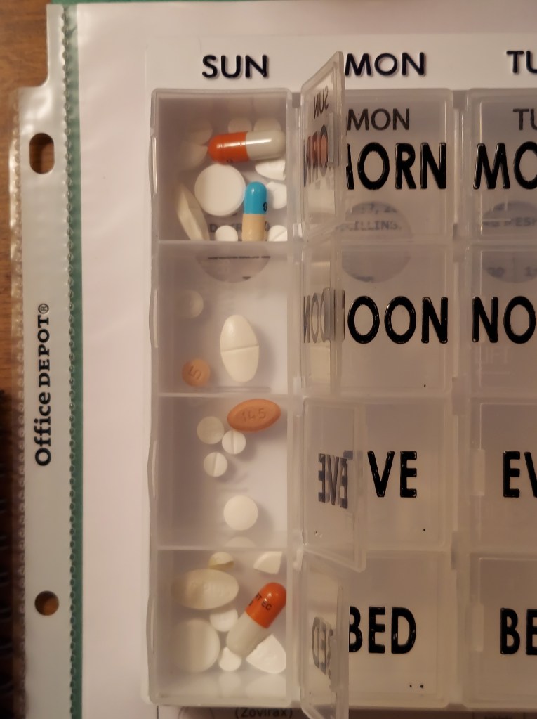 Being a full-time caregiver is a lot of work. But that’s ok, because caring for Theo is my full-time job. Luis does as much as he possibly can to help with everything, but it’s hard because he already has a full-time job. He does not live with us right now and when he visits, he has to be extra careful and wear a mask around Theo. Being Theo’s caregiver requires that I live in a bubble with him. We are together 24/7. Before the doctors would let Theo leave, I had to show the nurses that I was capable of delivering the correct meds and doses at the correct times during the day. That’s about 15 different medications (more than 30 pills) to keep track of during the day. I have a chart, a medicine journal, and alarms to help me manage it all. I even started using the large weekly pill organizer the pharmacist gave me – the one I almost threw away because I thought I would never use it. Theo was able to take one pill about every 20 minutes comfortably. With more than 30 pills to take throughout the day, it was an all-day affair, from 8am to 11pm. Theo is taking medications for immunosuppression, nausea control, viral infection prevention, fungal infection prevention, blood pressure, liver protection, heart burn, magnesium level support, and several forms of steroids to treat Graft Vs Host Disease (GVHD). Tacrolimus, an immunosuppressant, is extremely time sensitive. It MUST be taken every 12 hours to keep levels stable. If it is given even 30 minutes late, I have to call the hospital and potentially bring in Theo for a blood draw so Tacrolimus levels can be checked. I am also doing daily central line flushes, weekly sterile cap changes, sterile dressing changes, and last but not least, delivering IV fluids at night. That last one I was not excited about. It meant another three-hour training session on how to set up the IV pump and fluids and more boxes of medical supplies to take home. Not to mention having to listen to a loud pump at night with alarms. Well, at least Theo didn’t need the feeding pump! That was a huge relief. Theo’s magnesium levels were low. IV magnesium gets absorbed differently than oral magnesium, which is why Theo needed the IV fluids with magnesium. The doctors said it might not last long. Fortunately, they were right. Theo did not need the IV fluids much longer than one week. This phase in the recovery process is the heaviest. As recovery continues, things will get easier. One less pill to take, one less box to check on the to-do list. Little by little, the load gets lighter and lighter.