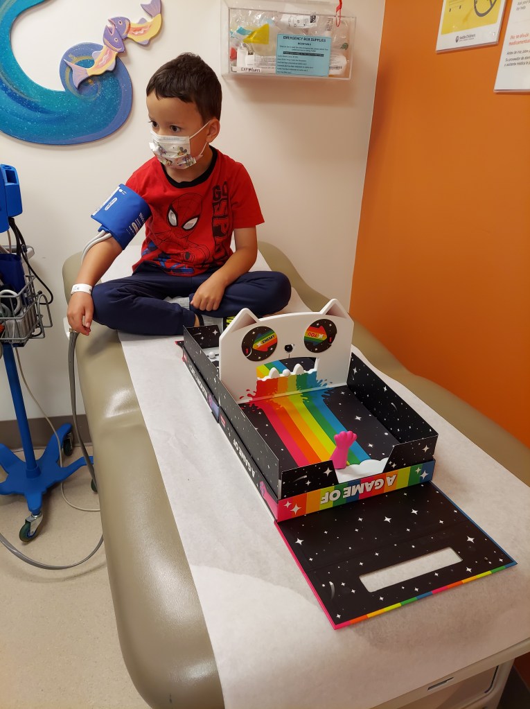 Fortunately, Theo has larger and very visible veins in his hands. The nurses told us not to give up. It will be easier next time when they do the poke in his hand. So that’s what we did the next two lab visits and… it worked!! We put numbing cream on both of his hands and port site. Child Life was there with extra support and distraction, a huge help. Theo regained his confidence and cheered after the second time having success getting the poke in his hand. If the next hand poke goes well, the next step will be to take out the port! Hooray!!!